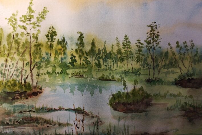 Чтобы приблизить лето, набросал акварельку в зелёных тонах. За рисованием слушал исторический и философский анализ книги Джона-Пола Химки «Украинские националисты и Холокост», участники: Георгий Касьянов, Евгений Голуб и Андрей Баумейстер. https://www.youtube.com/watch?v=pEHXzur2kfE